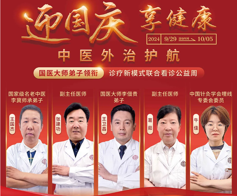 郑州御和堂中医趁国庆节来临之际,2024年9月29日—10月5日,开展“国医大师弟子领衔·中医外治护航,诊疗新模式联合看诊”公益活动,希望为众多渴望康复的患者点亮希望。我院精心策划与筹备,旨在通过汇聚名中医专家,为广大患者提供更准确、高效的诊疗方案,切实解决患者看病“有专家 没时间”,“有时间 没专家”的尴尬问题。